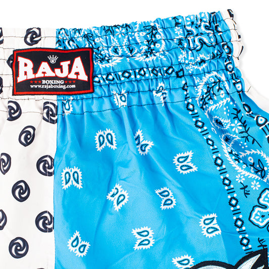 RAJA MUAY THAI SHORTS PAISLEY WHITE & LIGHT BLUE